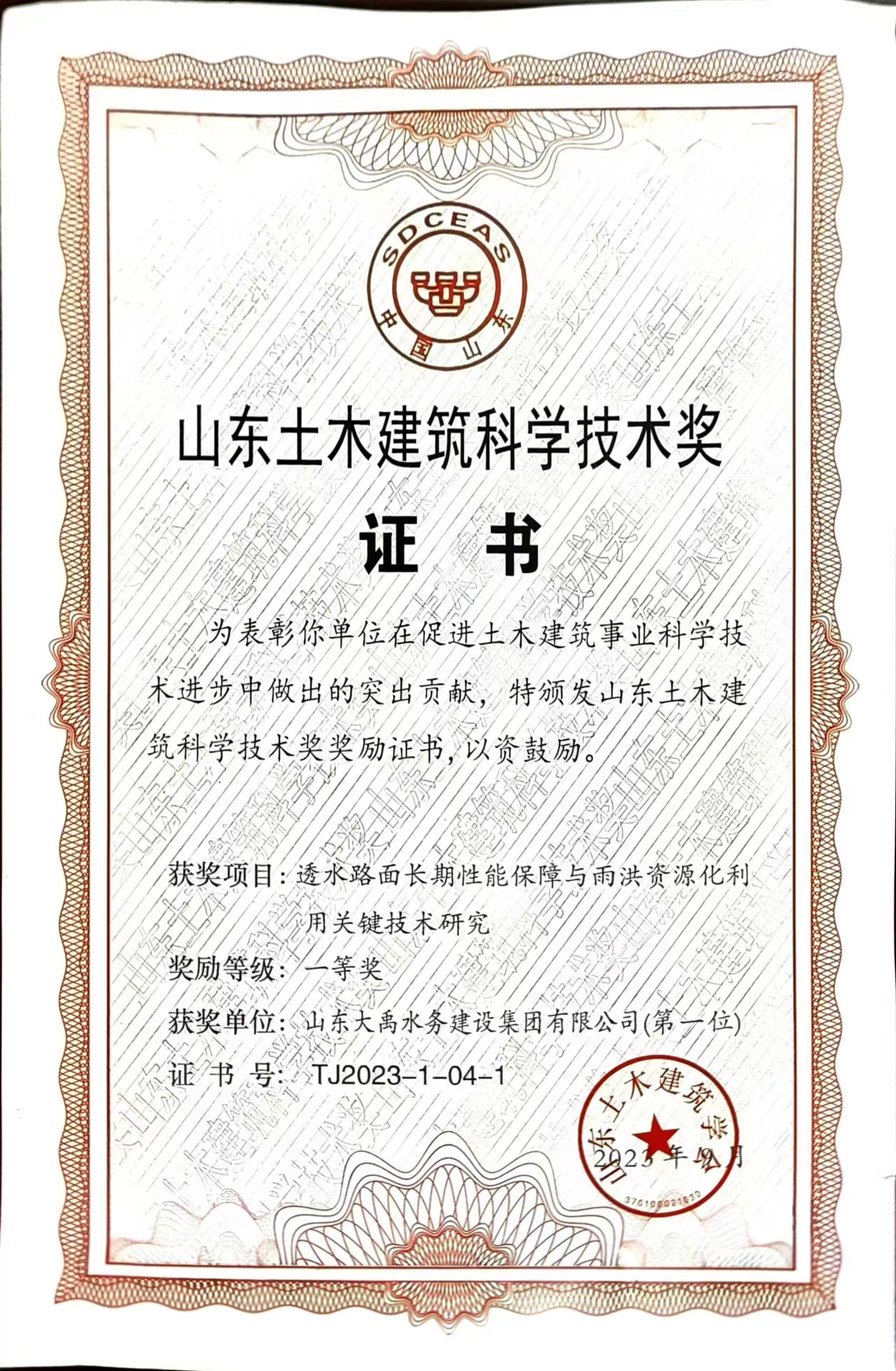 克日,山东土木修建学会宣布了“2023年度山东土木修建科学手艺奖(科技前进奖)获奖名单”并揭晓声誉证书。由MG不朽情缘等单位配合申报的“透水路面恒久性能包管与雨洪资源化使用要害手艺研究”项目荣获“2023年度山东土木修建科学手艺奖”一等奖。